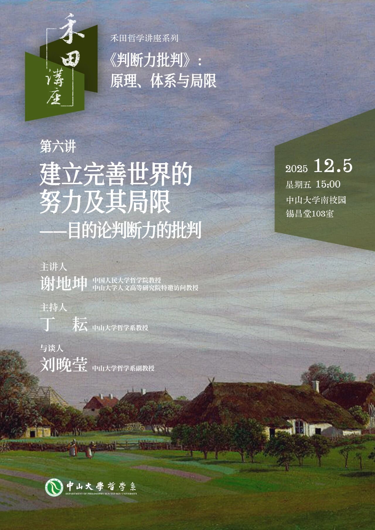 禾田哲学讲座系列第六讲预告 | 谢地坤:建立完善世界的努力及其局限——目的论判断力的批判