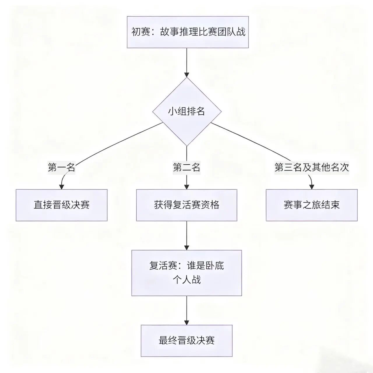每场比赛的第二名小组成员,将获得参加复活赛的资格,复活赛采用“谁是卧底”个人战形式。选手独自参赛,凭借个人推理能力争夺剩余决赛名额,为自己的赛事之旅续写可能性。
