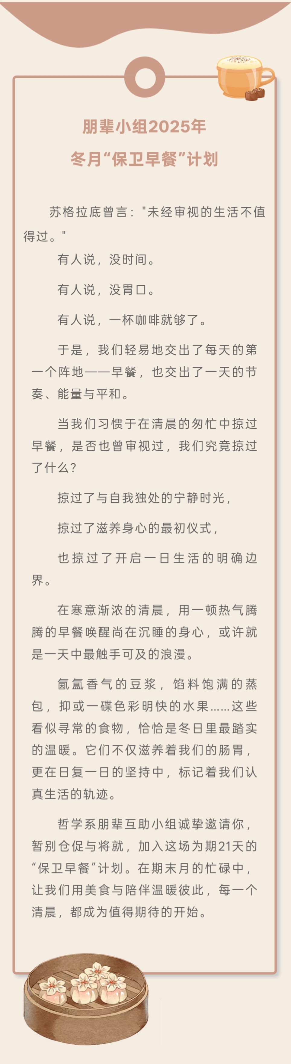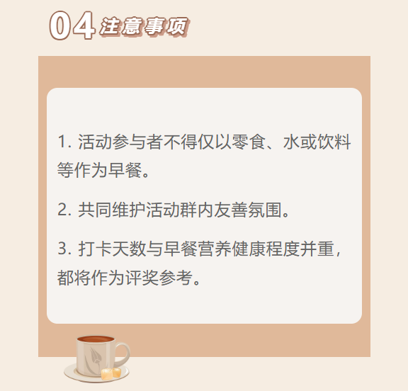 导航痕迹 六合彩资料 朋辈小组2025年冬月“保卫早餐”计划 | 从“再睡一会”到“真香” 朋辈小组2025年冬月“保卫早餐”计划 | 从“再睡一会”到“真香” 发布日期:2025-12-05 活动时间 2025年12月08日 06:00 - 2026年11月28日 09:00
