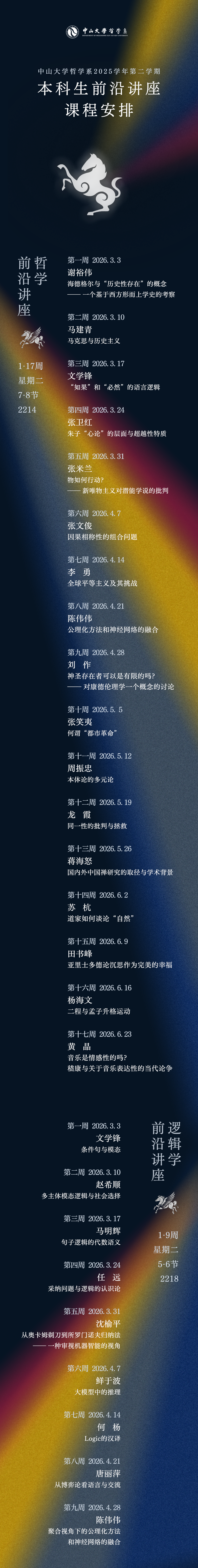 导航痕迹 六合彩资料 六合彩资料 2025学年第二学期本科生前沿讲座课程安排 六合彩资料 2025学年第二学期本科生前沿讲座课程安排 发布日期:2026-02-28 活动时间 2026年03月03日 15:00 - 2026年06月23日 17:00 活动地址 锡昌堂214